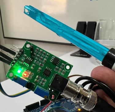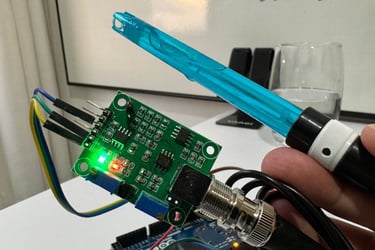 El sensor de pH PH-4502C con sonda E201-BNC es un módulo analógico diseñado para medir el nivel de acidez o alcalinidad de soluciones líquidas en un rango de 0 a 14 pH. Es ampliamente utilizado en aplicaciones como hidroponía, acuarios, laboratorios educativos, proyectos de electrónica y control de calidad de agua. El módulo incluye un potenciómetro para calibrar la señal de salida y adaptarla al rango de entrada analógica de microcontroladores como Arduino. La sonda E201, conectada mediante conector BNC, es un electrodo de vidrio sensible al pH, con cable de aproximadamente 70 cm, y funciona en un rango de temperatura de 0 a 80 °C. El sensor entrega una señal analógica proporcional al valor de pH, que puede ser interpretada y convertida a un valor numérico mediante una fórmula matemática en el código del microcontrolador. Requiere alimentación de 5V DC y consume una corriente entre 5 y 10 mA. Para obtener lecturas precisas, es recomendable calibrar el sistema con soluciones buffer estándar (pH 4.0, 7.0 y 10.0) y enjuagar la sonda con agua destilada después de cada uso. Este módulo es una solución económica y funcional para la medición de pH en proyectos de monitoreo de líquidos.